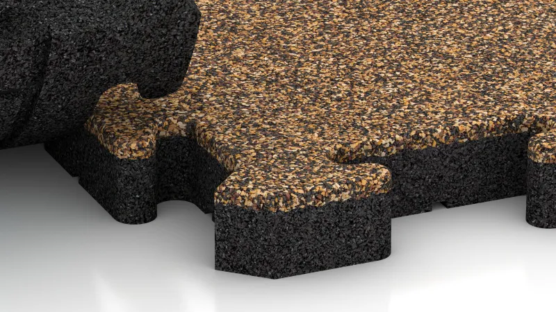 Bij dit systeem zijn de randen van de tegels voorzien van een tandprofiel dat lijkt op een klassieke puzzel of paddenstoelvormige koppeling. Tijdens het leggen grijpen de tanden van aangrenzende tegels in elkaar en vormen zo een doorlopende verbinding over de volledige hoogte van de tegel.