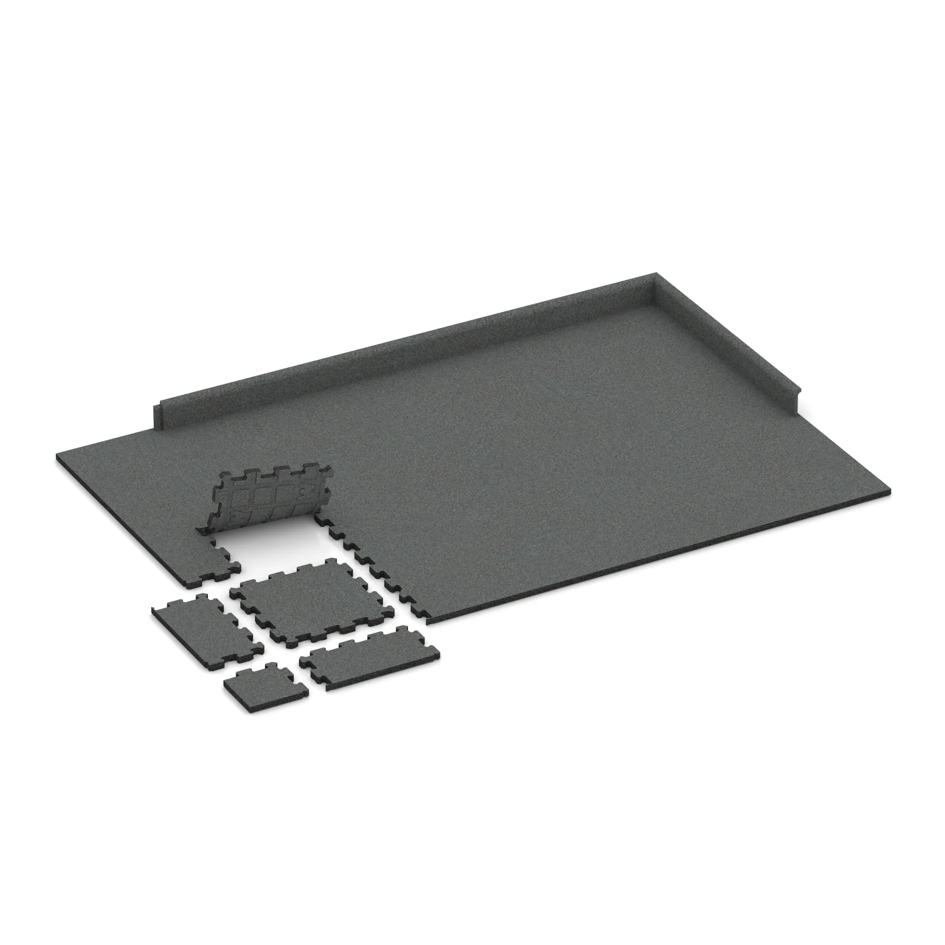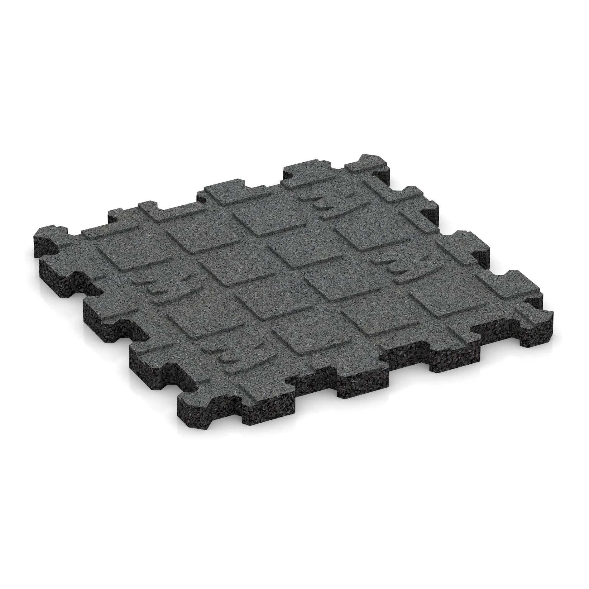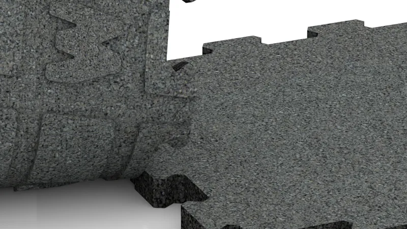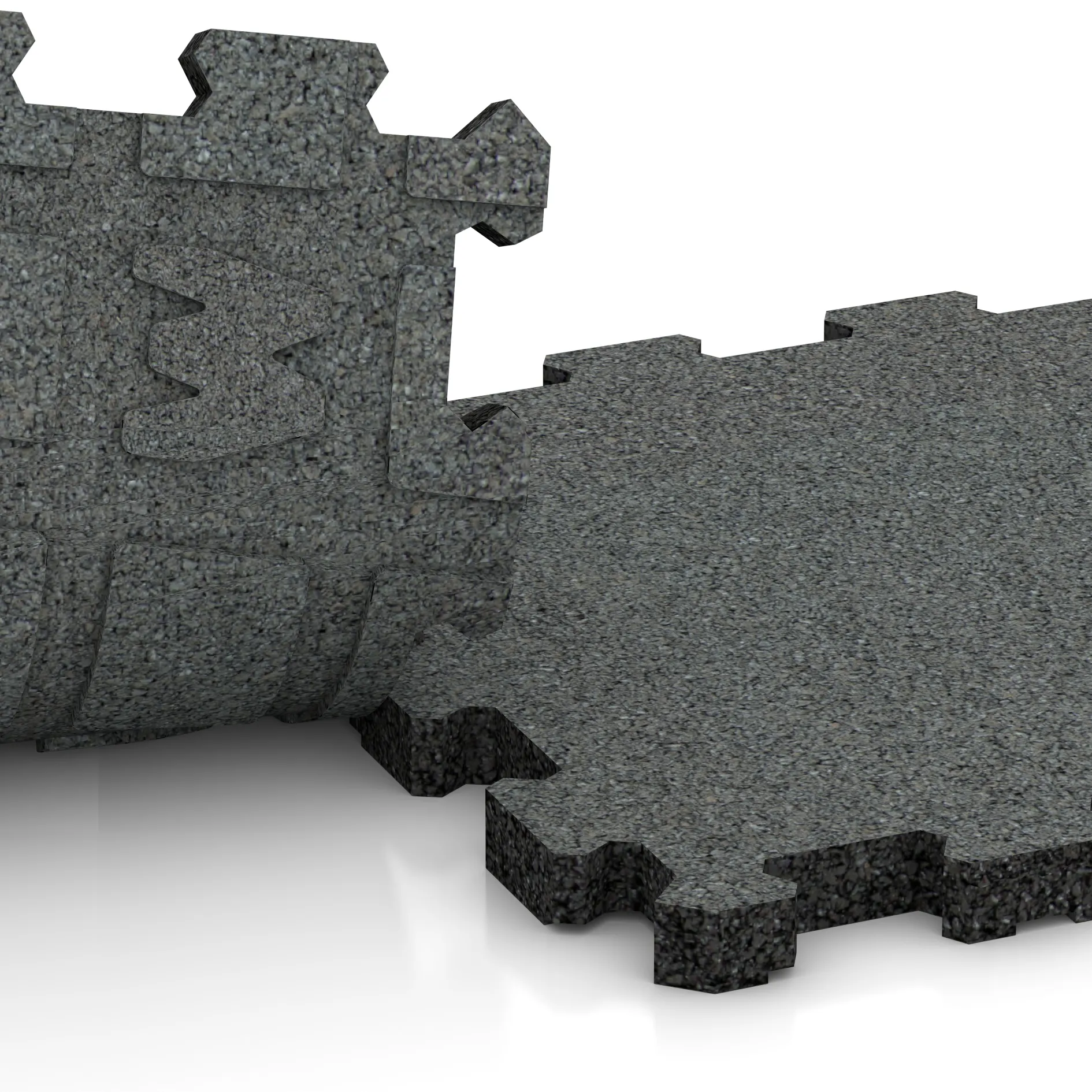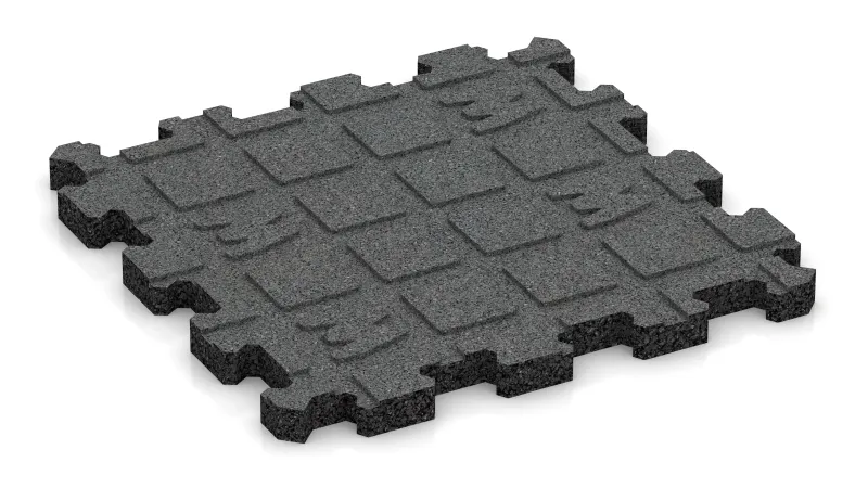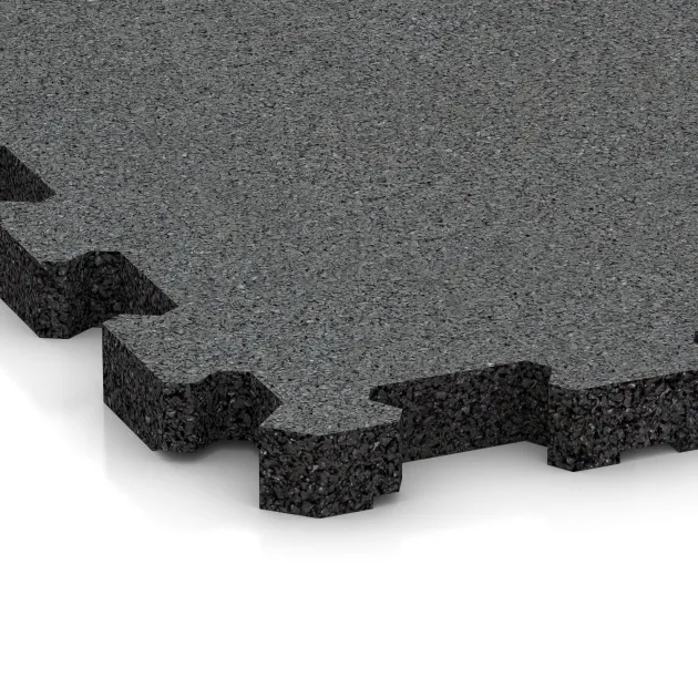 Het hoekpaneel met twee haaks op elkaar staande paneelzijden, gevormd in de vorm van een wig, is een nuttige en met het systeem verenigbare aanvulling op het rubbergranulaatpaneel van het type FS. Het hoekpaneel wordt gebruikt tussen 2 haaks op elkaar staande randpanelen FI om een hoek te vormen zonder struikelgevaar. Randpanelen en hoekpanelen worden gebruikt wanneer slechts een deel van het vloeroppervlak is bedekt met rubbergranulaattegels. Het hoekpaneel compenseert soepel het niveauverschil tussen het vloeroppervlak en het rubber paneeloppervlak en vermindert het risico op ongevallen.