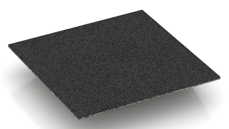 Het hoekpaneel met twee haaks op elkaar staande paneelzijden, gevormd in de vorm van een wig, is een nuttige en met het systeem verenigbare aanvulling op het rubbergranulaatpaneel van het type FS. Het hoekpaneel wordt gebruikt tussen 2 haaks op elkaar staande randpanelen FI om een hoek te vormen zonder struikelgevaar. Randpanelen en hoekpanelen worden gebruikt wanneer slechts een deel van het vloeroppervlak is bedekt met rubbergranulaattegels. Het hoekpaneel compenseert soepel het niveauverschil tussen het vloeroppervlak en het rubber paneeloppervlak en vermindert het risico op ongevallen.