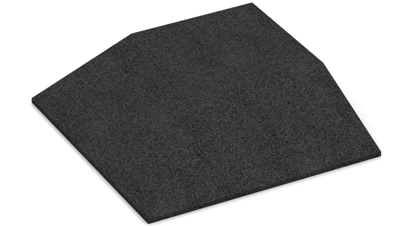 Het hoekpaneel met twee haaks op elkaar staande paneelzijden, gevormd in de vorm van een wig, is een nuttige en met het systeem verenigbare aanvulling op het rubbergranulaatpaneel van het type FS. Het hoekpaneel wordt gebruikt tussen 2 haaks op elkaar staande randpanelen FI om een hoek te vormen zonder struikelgevaar. Randpanelen en hoekpanelen worden gebruikt wanneer slechts een deel van het vloeroppervlak is bedekt met rubbergranulaattegels. Het hoekpaneel compenseert soepel het niveauverschil tussen het vloeroppervlak en het rubber paneeloppervlak en vermindert het risico op ongevallen.