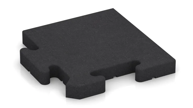 De Hoektegel HD Fine is de oplossing voor een nauwkeurige en professionele afwerking van de vier hoeken van sport- en trainingsvloeren met hogedichtheidstegels. Elke eenheid komt overeen met een kwart van een volledige HD Fine-tegel: de binnenzijden zijn voorzien van de betrouwbare puzzelverbinding, terwijl de twee buitenzijden recht zijn en zo een strakke omlijsting vormen.