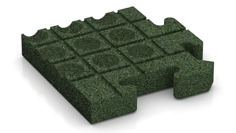 De hoektegel HD zorgt voor een precieze en duurzame hoekafwerking bij oppervlakken die bestaan uit hogedichtheidstegels. Elke eenheid is een kwart van een volledige puzzeltegel: de binnenzijden hebben de vertrouwde puzzelverbinding en sluiten exact aan op de overige tegels, terwijl de buitenzijden recht lopen en een strakke afwerkingsrand vormen. Het resultaat is een robuuste en visueel uniforme omlijsting van het hele oppervlak.
