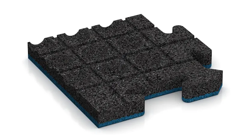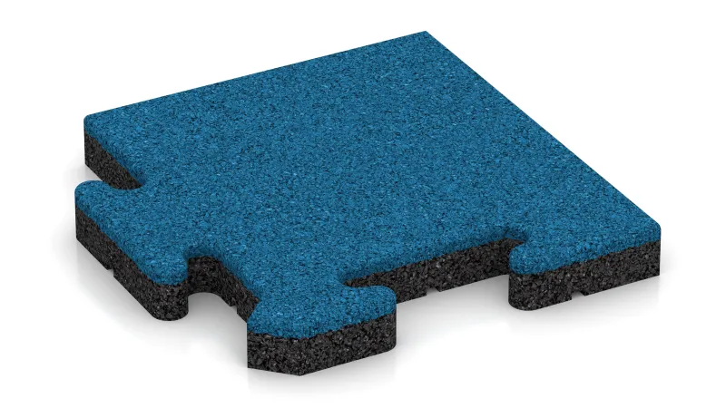 De hoektegel zorgt voor een strakke, rechte afwerking aan alle vier de hoeken van een vloeroppervlak. Elke tegel is een kwart van een volledige puzzeltegel: de binnenzijden hebben de vertrouwde puzzelverbinding en sluiten perfect aan op de andere tegels, terwijl de buitenzijden glad en recht lopen. Zo ontstaat een harmonieuze en functionele omlijsting van het gehele oppervlak.