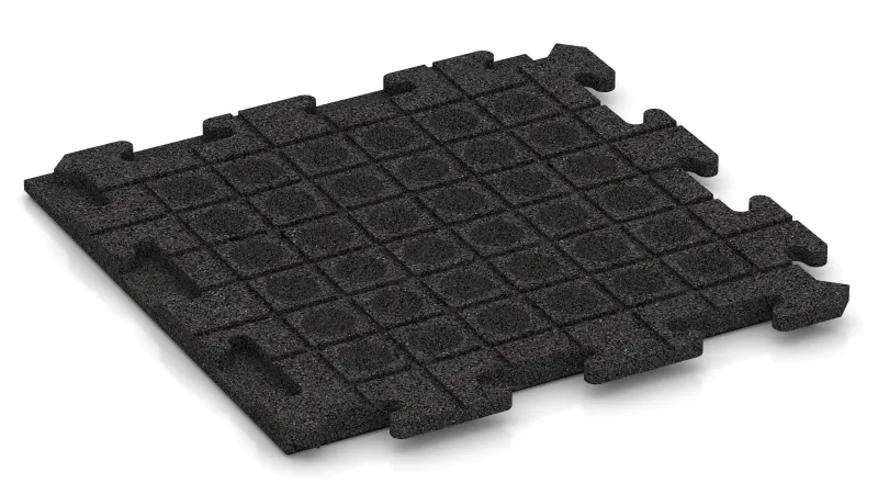 Het waterdoorlatende materiaal laat regen- en spoelwater snel weglopen; het oppervlak droogt vlot. Desinfectiemiddelen kunnen zonder bezwaar worden gebruikt, waardoor het onderhoud eenvoudig en hygiënisch is. De plaat blijft elastisch, duurzaam en temperatuurbestendig – ze rot of splintert niet en is blijvend vorstbestendig. De lichte schokdemping ontlast gewrichten en verhoogt het lig- en loopcomfort.