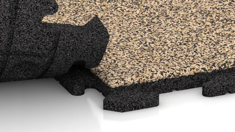 Bij dit systeem zijn de randen van de tegels voorzien van een tandprofiel dat lijkt op een klassieke puzzel of paddenstoelvormige koppeling. Tijdens het leggen grijpen de tanden van aangrenzende tegels in elkaar en vormen zo een doorlopende verbinding over de volledige hoogte van de tegel.