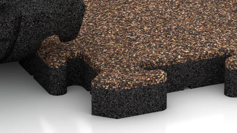Bij dit systeem zijn de randen van de tegels voorzien van een tandprofiel dat lijkt op een klassieke puzzel of paddenstoelvormige koppeling. Tijdens het leggen grijpen de tanden van aangrenzende tegels in elkaar en vormen zo een doorlopende verbinding over de volledige hoogte van de tegel.