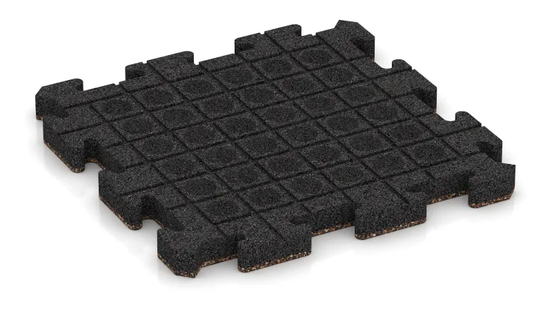 Twee zijden van de tegel zijn voorzien van een positief profiel, de andere twee van een bijpassend negatief profiel. Tijdens het leggen grijpen de tegels van onderen in elkaar en vormen zo een sterke mechanische koppeling. Van bovenaf ontstaat een egaal, strak oppervlak met een regelmatig voegpatroon – vergelijkbaar met een schaakbordmotief.