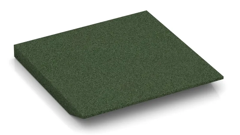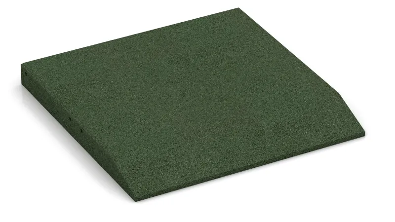 Het randpaneel met een schuine wigvormige paneelzijde is een nuttige en met het systeem verenigbare aanvulling op het rubbergranulaatpaneel type FS. De randplaat wordt gebruikt om struikelranden te voorkomen die ontstaan bij de overgang naar het rubbergranulaatpaneeloppervlak wanneer slechts een deel van het vloeroppervlak is bedekt met rubbergranulaatpanelen. De randplaat compenseert dus soepel het niveauverschil tussen het vloeroppervlak en het oppervlak van de rubberplaten. Ongevallen door struikelen worden voorkomen en rolstoelen, kinderwagens of rollators kunnen er gemakkelijk op.