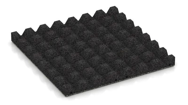 De openporige EPDM-toplaag is UV-bestendig, slijtvast en slipvast – ook op natte ondergrond. Dankzij het huidvriendelijke oppervlak is de tegel uitermate geschikt voor toepassingen met direct lichaamscontact. De onderzijde is gemaakt van ELT-granulaat met een patroon van omgekeerde piramidevormen, dat schokken dempt, regenwater afvoert en zorgt voor snelle droging – ideaal bij wisselende weersomstandigheden.