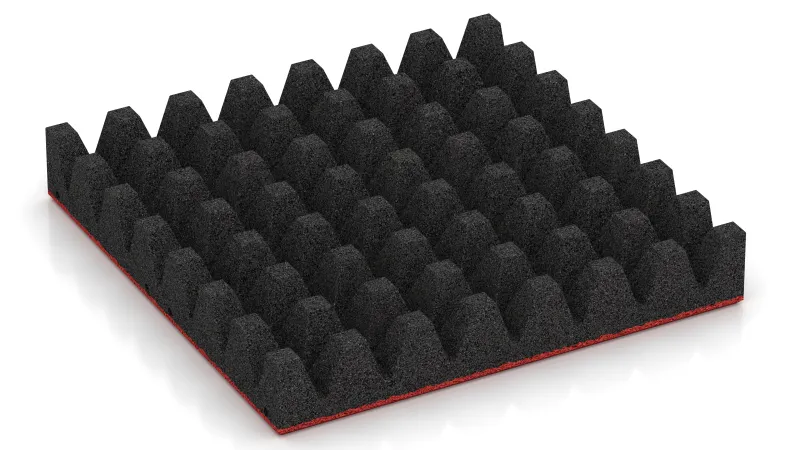 De tegel is opgebouwd uit twee lagen: een bijna 7,5 cm dikke functionele onderlaag van gerecycled ELT-rubbergranulaat (afkomstig van autobanden) en een slijtvaste EPDM-toplaag. Het poreuze EPDM-oppervlak is slipvast, UV-bestendig, slijtvast en huidvriendelijk. De onderzijde is voorzien van omgekeerde piramidevormen die de impactenergie verspreiden en als drainagelaag functioneren. Hierdoor wordt water snel afgevoerd en plasvorming vermeden.