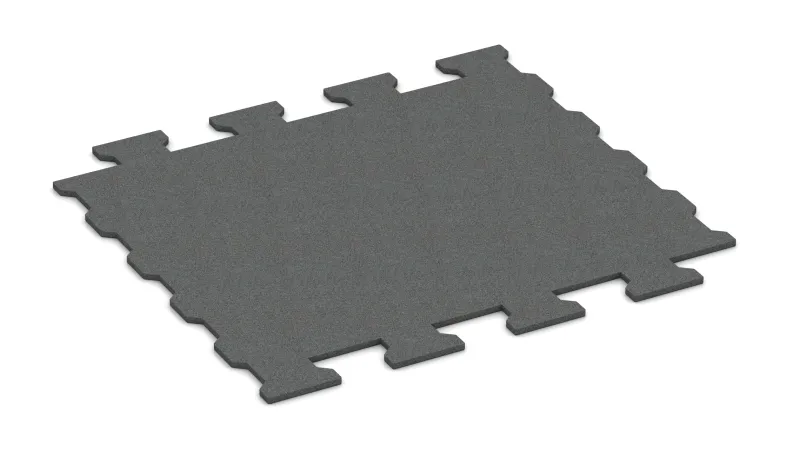 De matten zijn gemaakt van PU-gebonden ELT-rubbergranulaat en zijn volledig waterdoorlatend. De randen zijn licht afgeschuind en de onderzijde is voorzien van ingeperste drainagerillen, die het doorgedrongen water afvoeren en ervoor zorgen dat het oppervlak onder vrijwel alle weersomstandigheden vrij van plassen blijft.