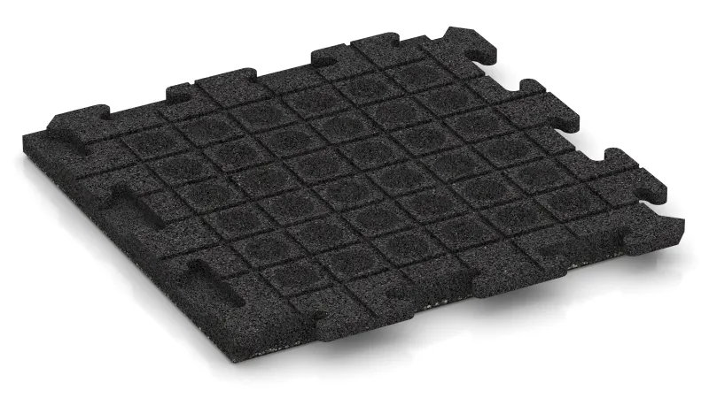 De tegels worden gemaakt van PU-gebonden ELT-rubbergranulaat uit hergebruikte autobanden, met optioneel een toplaag van volledig doorgekleurd en UV-bestendig EPDM-rubbergranulaat. Beide uitvoeringen zijn elastisch, robuust en milieuvriendelijk. Het oppervlak is antislip, veerkrachtig en volledig waterdoorlatend, zodat regenwater vrij in de bodem kan trekken. De ondergrond blijft ademend, en planten en boomwortels worden niet aangetast.