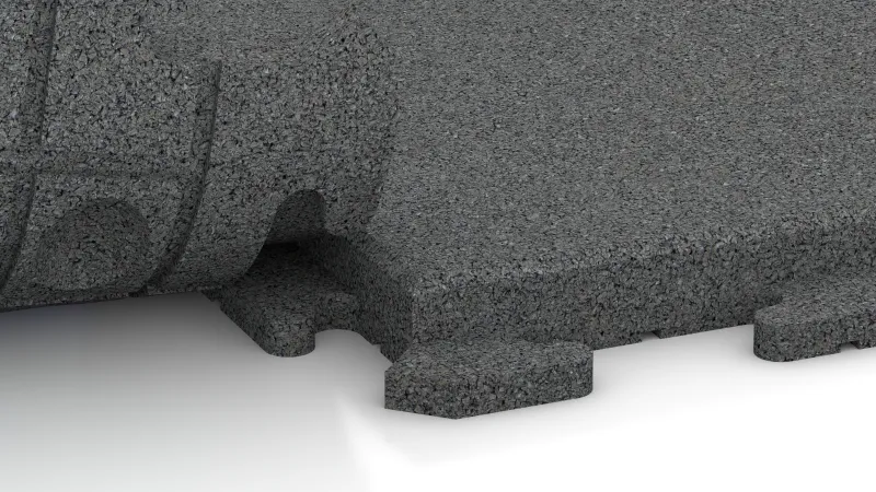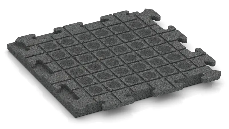 De tegels worden gemaakt van PU-gebonden ELT-rubbergranulaat uit hergebruikte autobanden, met optioneel een toplaag van volledig doorgekleurd en UV-bestendig EPDM-rubbergranulaat. Beide uitvoeringen zijn elastisch, robuust en milieuvriendelijk. Het oppervlak is antislip, veerkrachtig en volledig waterdoorlatend, zodat regenwater vrij in de bodem kan trekken. De ondergrond blijft ademend, en planten en boomwortels worden niet aangetast.