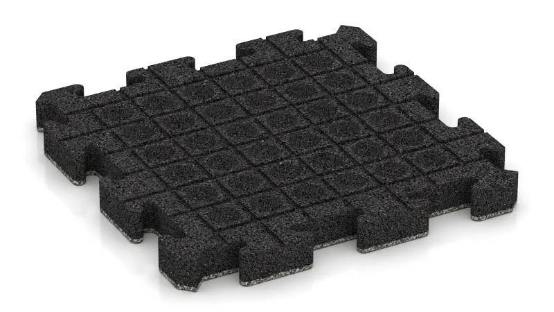 De veerkrachtige structuur biedt hoog loopcomfort en vermindert hoorbaar het geluid van harde schoenzolen, rollende koffers of skateboards. Het oppervlak biedt ook valbescherming – een voordeel voor kinderen, ouderen en revalidatiezones. De antislipafwerking blijft bij zowel droog als nat weer betrouwbaar grip geven. Op een stabiele ondergrond kunnen de tegels zelfs met personenauto’s worden bereden.
