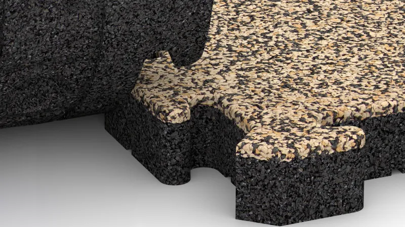 De tegels zijn gemaakt van PU-gebonden ELT-rubbergranulaat en verkrijgbaar in diverse aantrekkelijke kleuren. Het onderhoud is minimaal: het oppervlak kan eenvoudig worden geveegd of met water worden schoongespoten. Bij correcte installatie en gebruik behouden de tegels hun elasticiteit en functie jarenlang, zonder te scheuren of te breken.