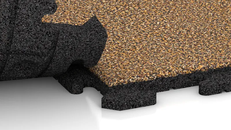 Bij dit systeem zijn de randen van de tegels voorzien van een tandprofiel dat lijkt op een klassieke puzzel of paddenstoelvormige koppeling. Tijdens het leggen grijpen de tanden van aangrenzende tegels in elkaar en vormen zo een doorlopende verbinding over de volledige hoogte van de tegel.