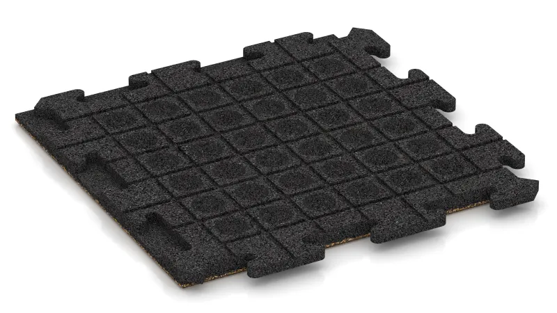 Comfort & veiligheid. Het oppervlak is slipvast en biedt zekerheid bij droog en nat weer. De elastische structuur dempt loopgeluiden en stoten, waardoor de vloer comfortabel en gewrichtsvriendelijk aanvoelt.