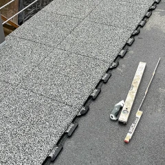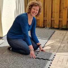 De platen zijn eenvoudig, snel en makkelijk te leggen, ook voor leken. Ze bieden een geweldig loopgevoel, zelfs op blote voeten. Het materiaal had bij ons slechts een paar uur een lichte geur, die toen verdween. Conclusie: wij hebben nu een fantastische terrasvloer. 100 % aanrader.