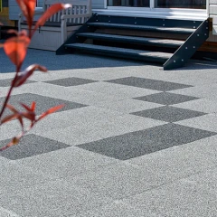 Deze terrastegels van rubber granulaat combineren nuttige functionaliteit met een uniek feelgood-effect en zijn in een handomdraai zelf te leggen.