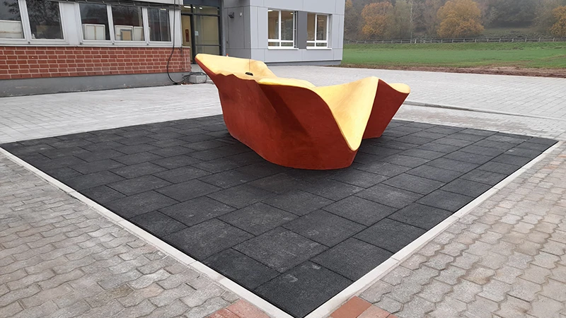 De basislaag van kunststof honingraatroosters is veel beter dan een conventionele onderbouw van steenslag en steenslag. En het voorkomt effectief het ongewenste "opscheppen" van valbeschermingsplaten. Met weinig moeite ontstaat een ideale en infiltratie-open onderlaag met een draagvermogen van 120 t/m2.